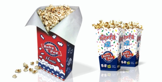 Cliente: AMERICAN BABY POP S.R.L. - Pergamino - Buenos Aires | Marca: BABY POP | Envases Cartulina y Papel para Popcorn. Diseño de envase, dirección y producción ilustración.